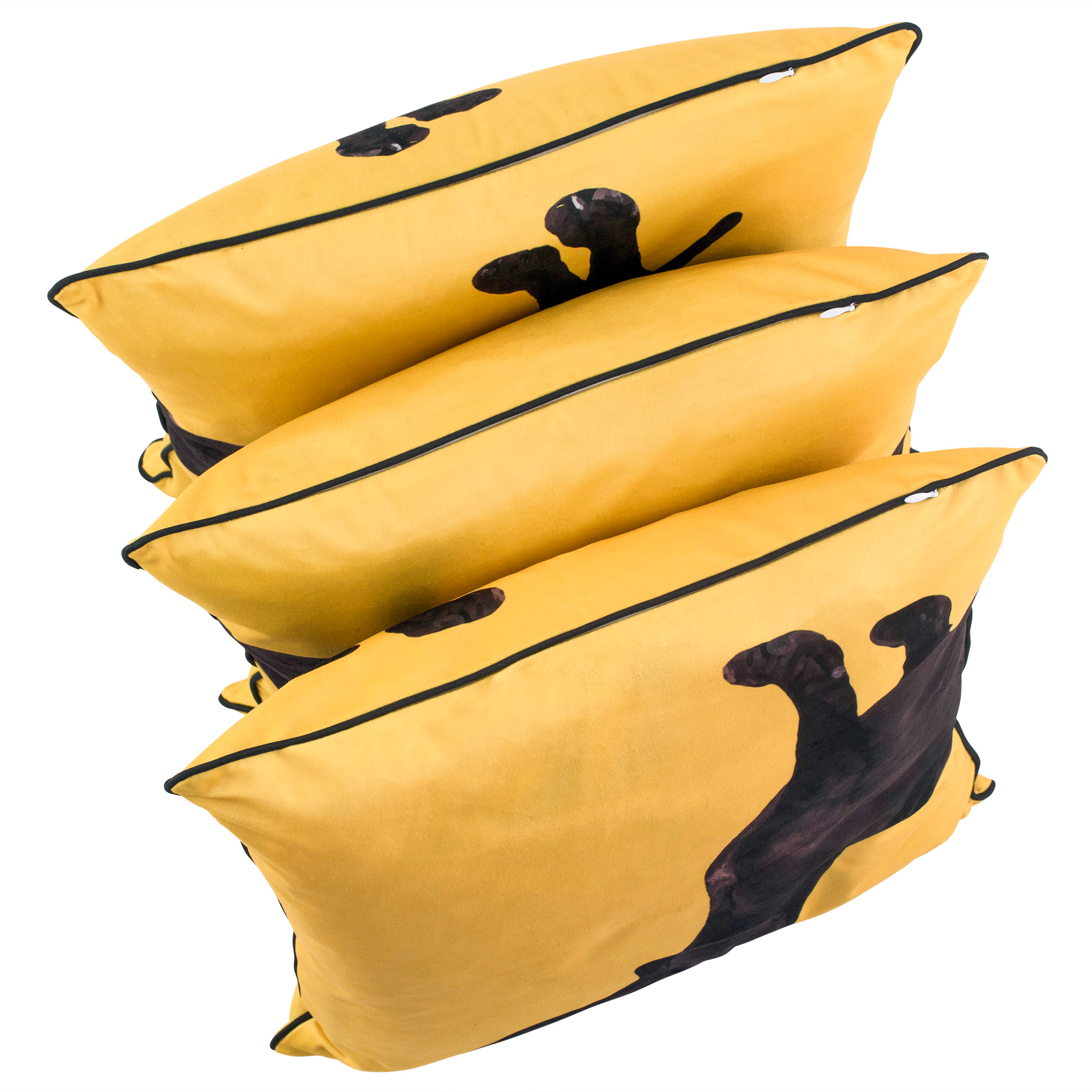 Here at Lombardi we create unique decorative pillows that are soft, comfortable and made to surprise. Add some color to your sofa or bed with this cushion set featuring an adorable cuddly dachshund.